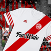 Introducing the all new 19/20 Club Atlético SHRM Millonarios jersey. Based loosely on the shirt worn by River Plate from 1996-98. It features our brand motto "Far & Wide", which sits upon the world-famous red sash and is executed in a typeface not too dissimilar to Argentina's most popular beer Quilmes - who famously sponsored both Buenos Aires clubs in the 1990's.